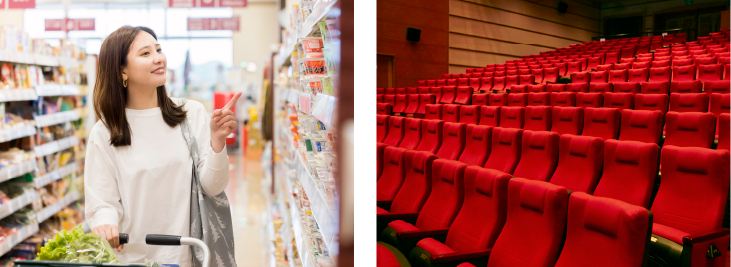 毎日のお買物に便利な生鮮食料品はもちろん、100円ショップや本屋ドラッグストアも揃ったスーパーマーケット。敷地内にはお洒落なレストランやカフェも併設しています。